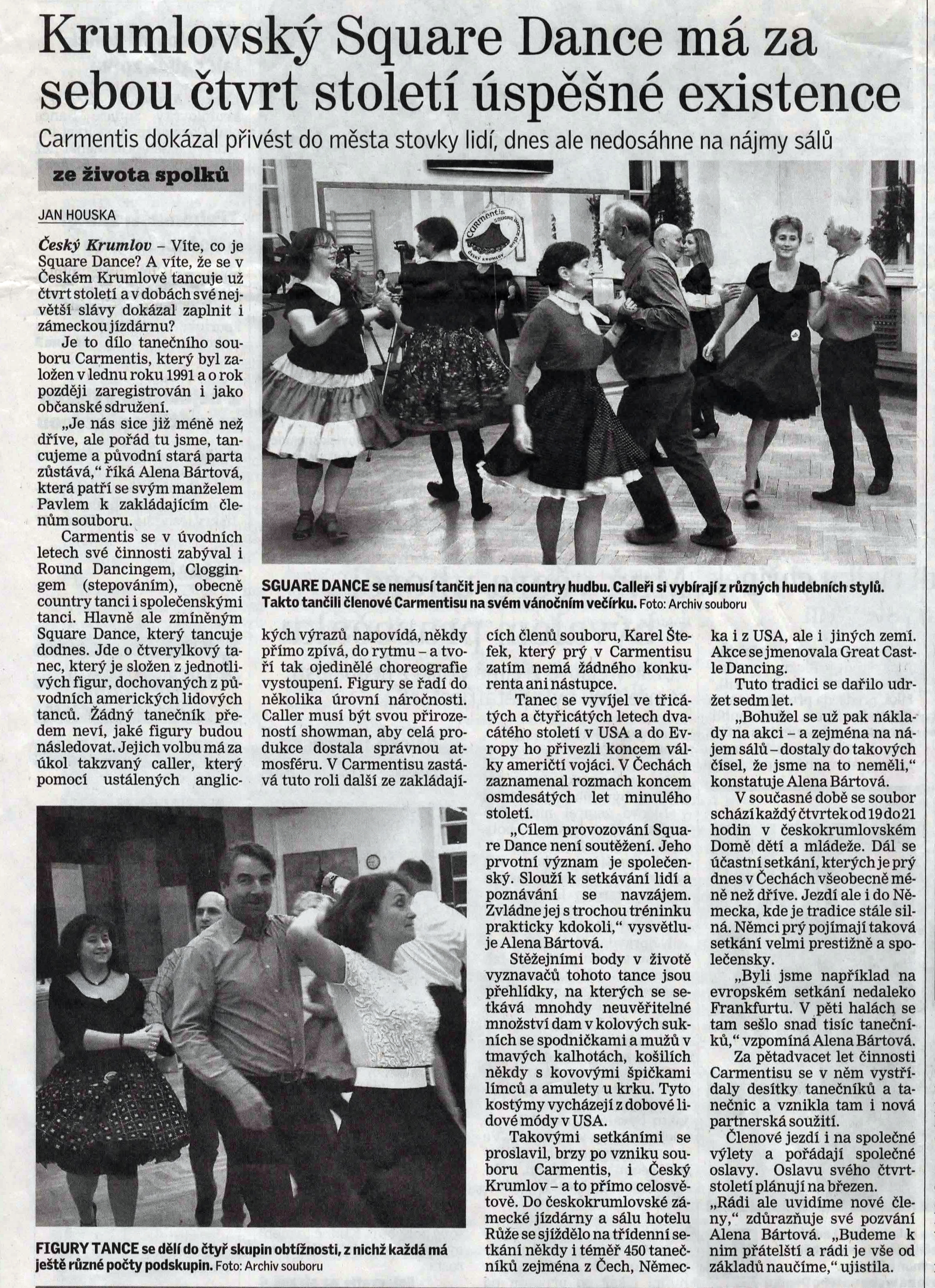 SDC Carmentis založila dne 17.1. 1991 skupina přátel, kterým se Square Dancing zalíbil a chtěli se s ním zabývat. A tak vznikl squarový klub, který byl v roce 1992 zaregistrován jako Občanské sdružení. Již v následujícím roce se rozšířil o další zajímavý taneční styl - Round Dancing. Později o Clogging, Country tance a Společenské tance. Sebejistota klubu rychle stoupala a tak se rozhodl uspořádat v českokrumlovské zámecké Jízdárně mezinárodní taneční setkání "Great Castle Dancing“. Nejlepší byl třetí ročník, kdy přijelo 430 tanečníků z 27 českých a 12 zahraničních klubů. Právě díky Square dance a Round Dance dokázali tito lidé tancovat a bavit se celé tři dny v zámecké Jízdárně a sálu hotelu Růže. Great Castle Dancing nás proslavil po celém světě. Důkazem toho jsou obdivující dopisy až z USA. Osmý ročník se bohužel pro abnormálně vysoké náklady za sál již nepodařilo uspořádat..
